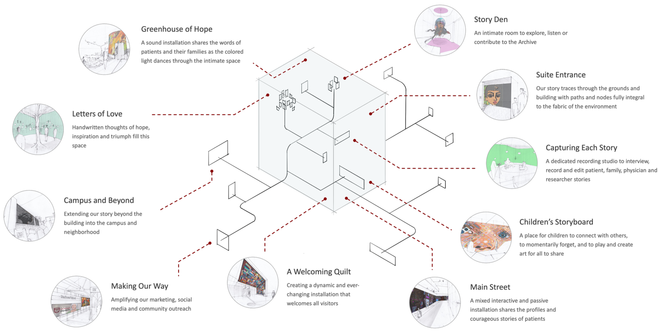A place of storytelling and recognition that celebrates UMC's groundbreaking achievements, its ongoing look into the future of medical care and discovery, and connects and inspires providers, recruits, donors, students of science, and all visitors.