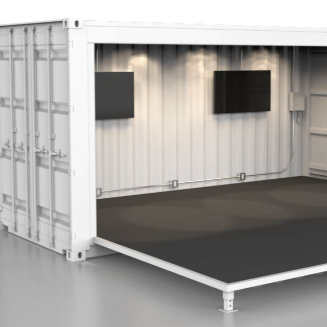 The main plenary space served as the heart of the conference. I designed it using DHL's shipping containers as the primary architectural element—practical, on-brand, and powerfully symbolic. Living green walls softened the industrial feel while reinforcing the sustainability message. Clean, modern furniture created a bright, hopeful atmosphere rather than feeling preachy or austere.