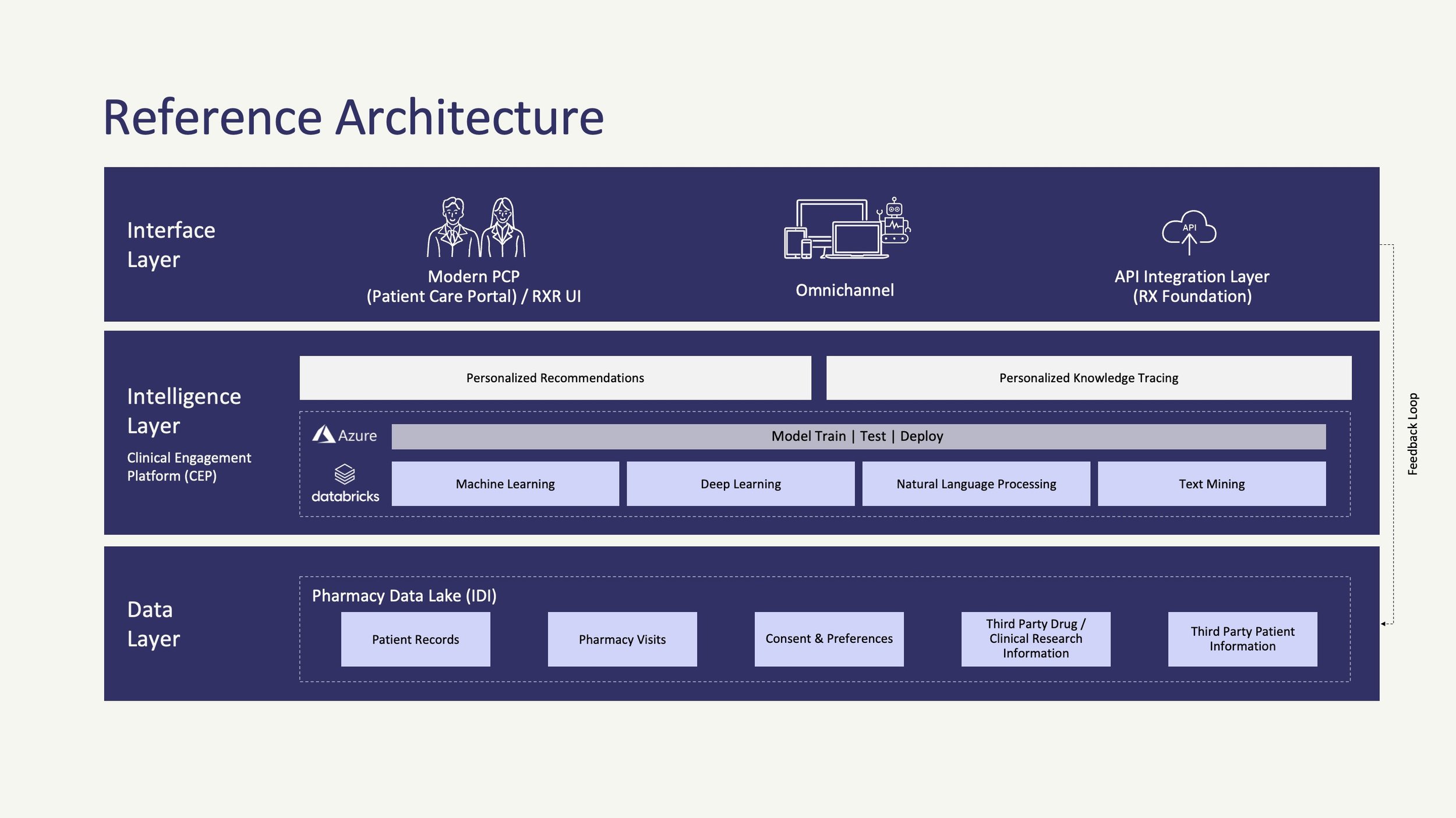 The platform aggregates healthcare data from multiple sources, uses machine learning to provide personalized prescription recommendations, and enables real-time adherence tracking with proactive intervention capabilities.